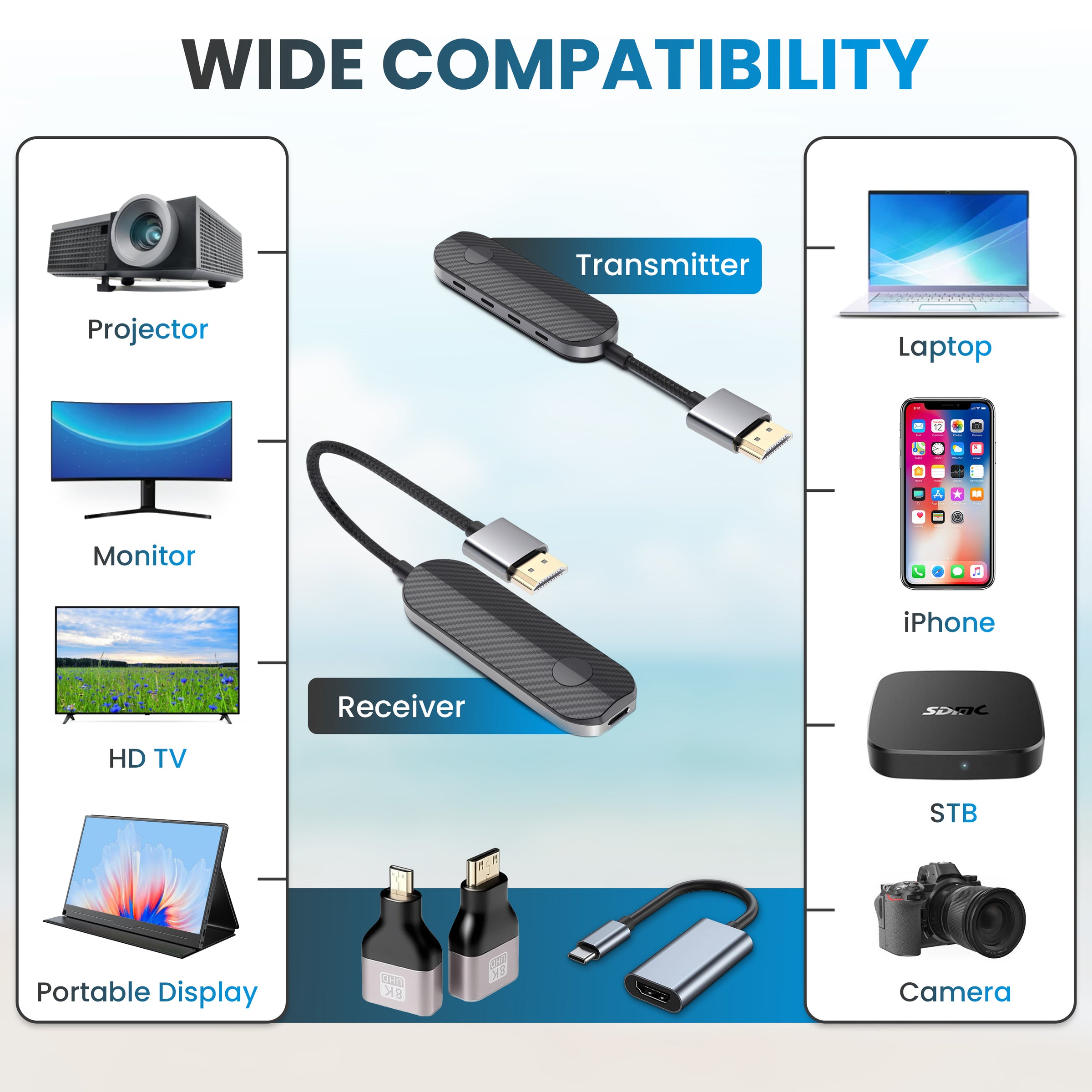 This wireless HDMI adapter is a game-changer! Setting up was truly plug-and-play – no lag or compression issues during my movie marathon. It flawlessly mirrors my laptop to the big screen, freeing me from cable clutter. The stable connection and crisp HD quality make it perfect for both work presentations and weekend entertainment. Highly recommend for anyone wanting a reliable, hassle-free solution!