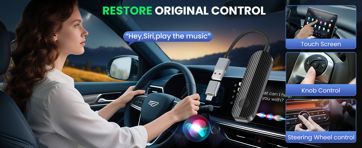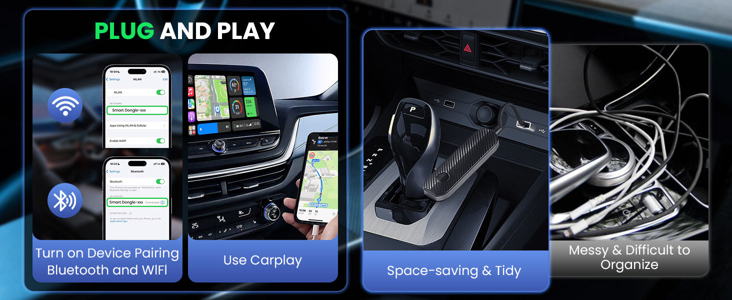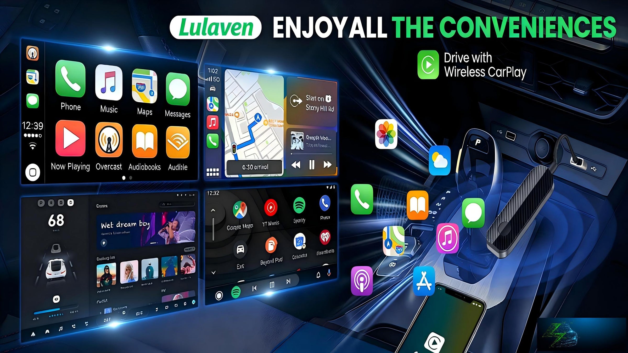 Wireless CarPlay & Android Auto Adapter Upgrade Wired to Wireless in seconds - Instantly convert factory CarPlay/Android Auto systems without cables. Enjoy navigation, Spotify/Apple Music streaming, hands-free calls, and voice commands